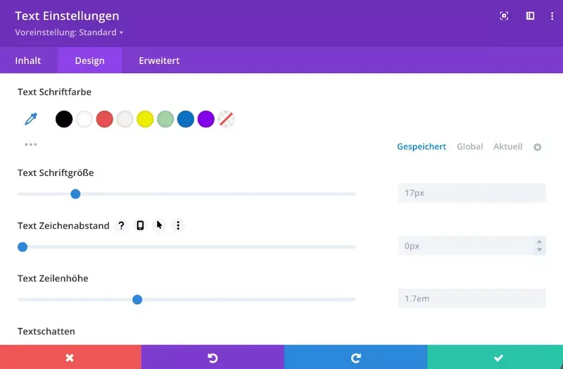 - Designoptionen verwenden: Passe Farben, Schriftarten, Abstände und mehr über die Design-Einstellungen jedes Moduls an.