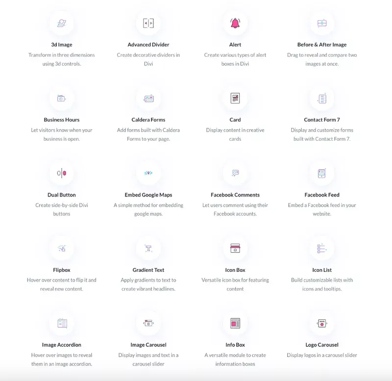 Der Divi Builder bietet eine Vielzahl an grafischen Elementen: