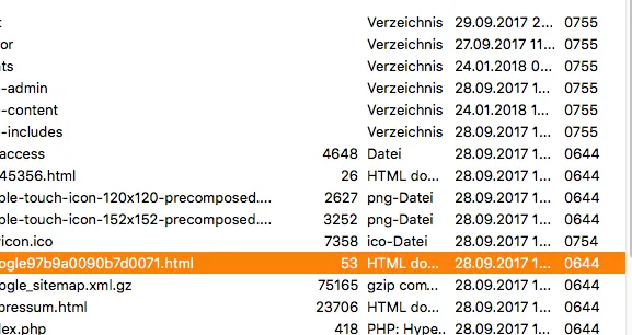Öffne dein FTP-Programm (z.B. Filezilla) und klicke in der Hauptebene auf die verschiedenen Ordner und Unterordner. Grundsätzlich sollten hier die Rechte 755 oder 644 als „Permission“ eingetragen sein. Abweichungen können Probleme verursachen.