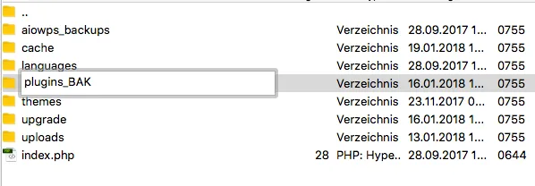 Solltest du dich nicht einloggen können, benenne den Plugin-Ordner um. So werden alle Plugins automatisch deaktiviert.