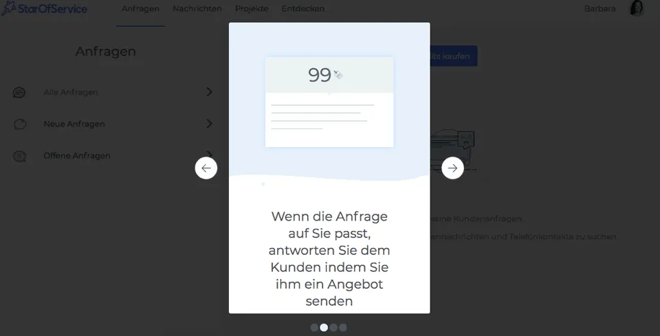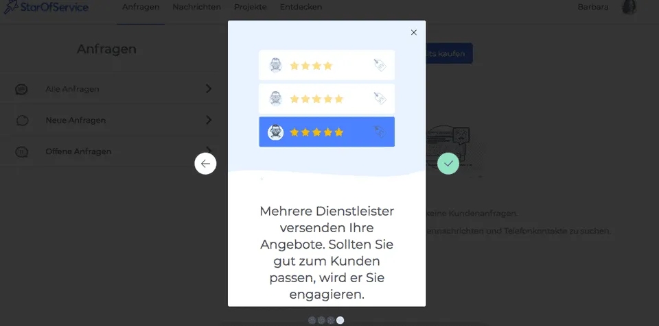 Das Prinzip von „Kunde sucht Experten“ ist nicht neu. Für Kreative gibt es aber im deutsch-sprachigen Raum eher wenig Angebote, die auch genügend Kundenanfragen generieren. StarOfService.de könnte da eine echte Hilfe sein. StarOfService macht das, was Sinn macht: Sie bringt tausende Kundenanfragen in den verschiedensten Bereichen mit Hunderten kompetenten Freiberuflern zusammen. Das gute alte Marktwirtschaftsprinzip auf einen Klick: Angebot und Nachfrage. Einmal angemeldet erhält man (nur) passende Anfragen.