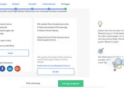 Ich habe zum Beispiel die Leistung „Grafikdesign“ angegeben – und konnte gleich sehen, wie viel Potential es gibt. Mehr als 5 Millionen Projekte werden jedes Jahr über das Portal abgewickelt. Der Kunde kriegt Erinnerungsmails in deinem Namen: Diese sind zuvorkommend formuliert. Man kann sich vorab eine Testmail schicken lassen.