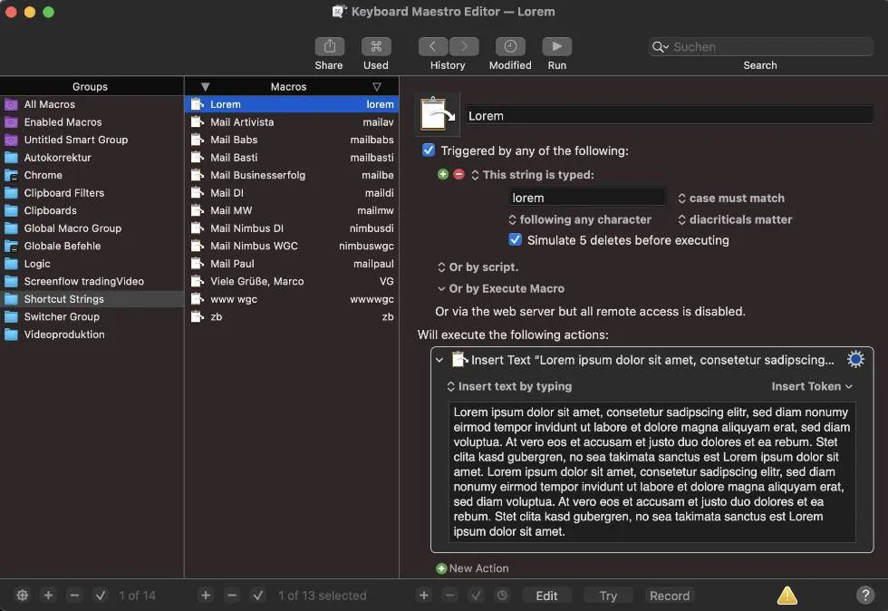 Natürlich kann man Bildtexte auch manuell einfügen. Ich habe mir hierfür einen Shortcut erstellt, sodass ich beliebige Texte in beliebiger Länge in beliebigen Programmen einfügen kann. (… habe ich schon beliebig gesagt?). Um alle Texte sauber zu verwalten, nutze ich Keyboard Maestro.
