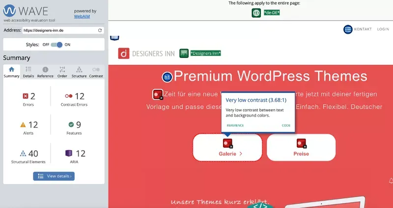 - Detaillierte Analysen: Neben allgemeinen Fehlern zeigt WAVE auch Warnungen und Verbesserungsvorschläge an.