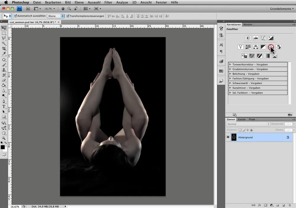 Fotofilter auswählen (Fenster > Korrekturen > Fotofilter)