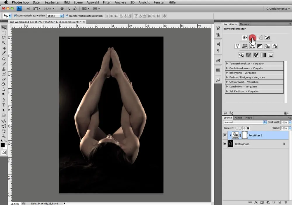 Fenster > Korrekturen > Tonwertkorrektur