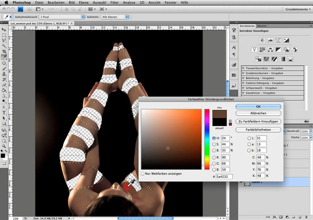 Ich würde dazu mit der Pipette (I) einen Wert von der Haut des Modells aufnehmen.