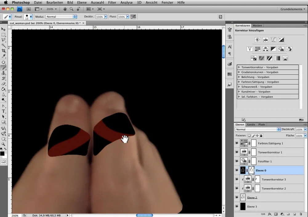Kleinere „Ungereimtheiten“, sprich unsaubere Ausschnitte könnt ihr in der Ebene 0 wegmaskieren (siehe Bilder).