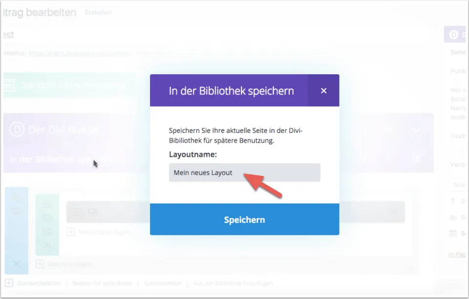 Dazu speichere ich meine Seite als Design ab. Wähle dazu einfach „In der Bibliothek speichern“.