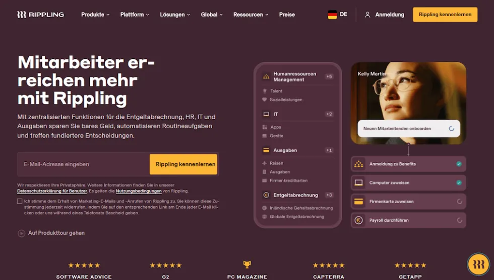 Es geht nicht nur darum, Compliance-Anforderungen zu erfüllen. Rippling trägt dazu bei, ein reibungsloses Mitarbeiter Erlebnis zu schaffen, was entscheidend ist, wenn Sie Ihr neu eingestelltes deutsches Marketing Talent motiviert und engagiert halten möchten.