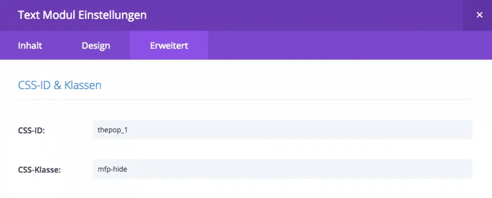 Tipp: Wenn du mehrere Lightboxen auf einer Seite verwendest, kannst du thepop_1 im LINK und in dem jeweiligen ID-Einstellungen des Moduls beliebig umbenennen (z.B. thepop_2).