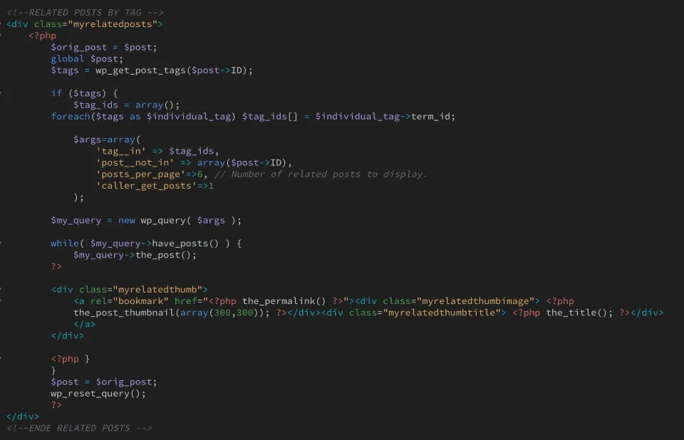 Dazu folgende kurze Erklärung. Ich habe den Code in einen DIV-Container mit Klasse (myrelatedposts) gepackt, damit du die neue Sektion leicht formatieren kannst.