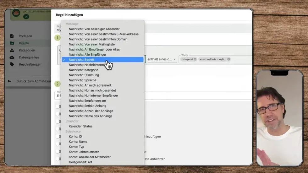 Regeln sind die Basis jeder Automatisierung. Du definierst Bedingungen und Aktionen. Bedingungen können sein: