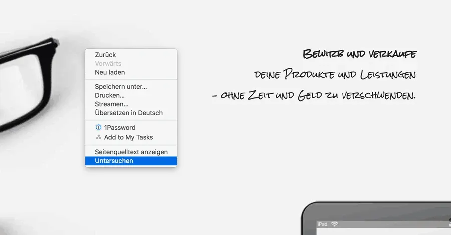 Öffne dazu den Browser deiner Wahl, zum Beispiel Chrome oder Firefox. Klicke dann mit der rechten Maustaste auf eine freie Stelle und wähle „Untersuchen“ (Chrome) oder „Element untersuchen“ (Firefox).