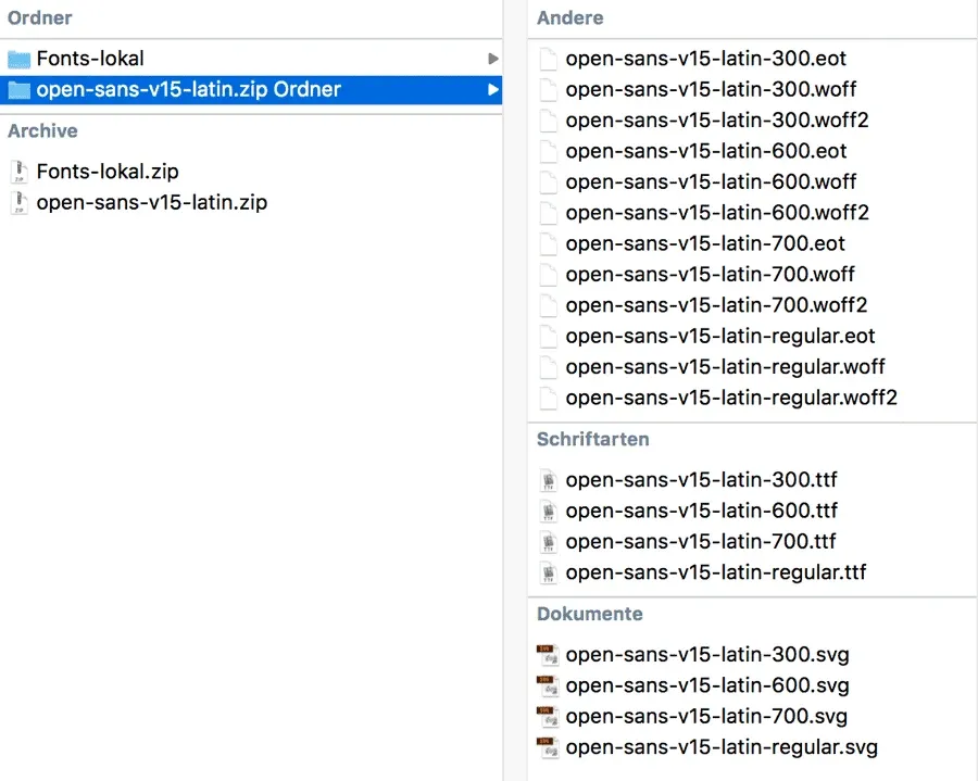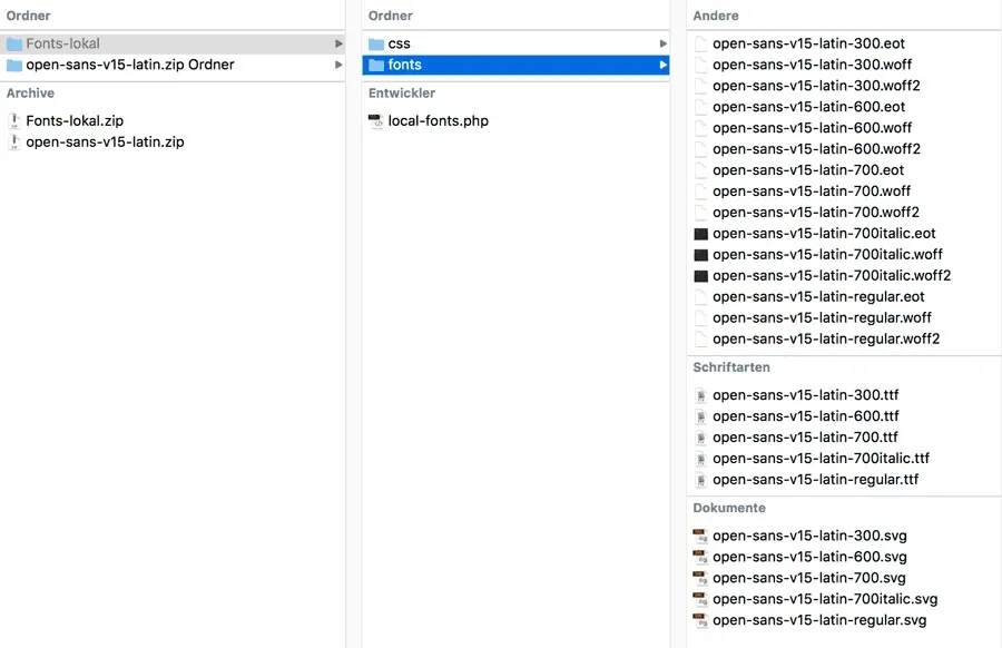 Möchtest du weitere Schriften benutzen, wiederhole einfach obige Schritte und füge die zusätzlichen Downloads dem Ordner „Fonts“ hinzu und den passenden CSS-Code entsprechend der Datei „local-fonts-style.CSS“.