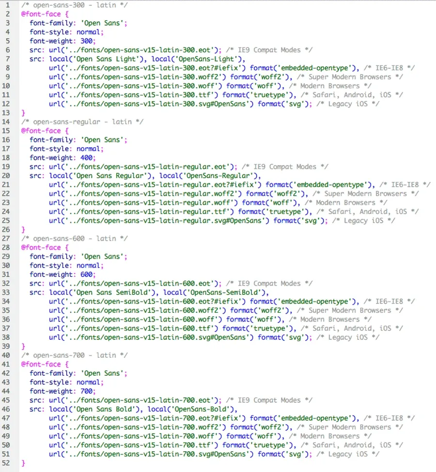 - Moderne Brwoser: woff und woff2 für moderne Browser