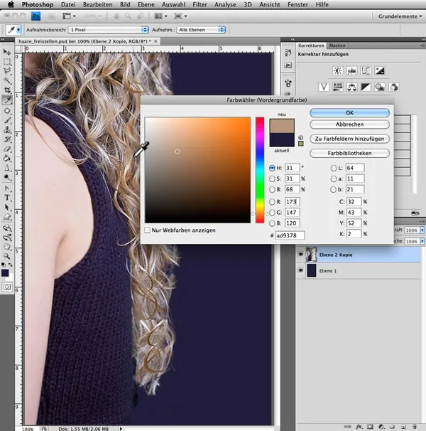 Sind beim Freistellen unschöne Löcher aufgetreten, können wir diese mit kopierten Haarteilen füllen.