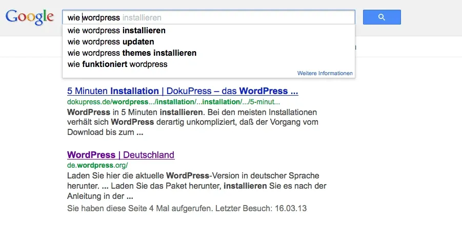 Tippe ich zum Beispiel »wie WordPress …« ergänzt Google
