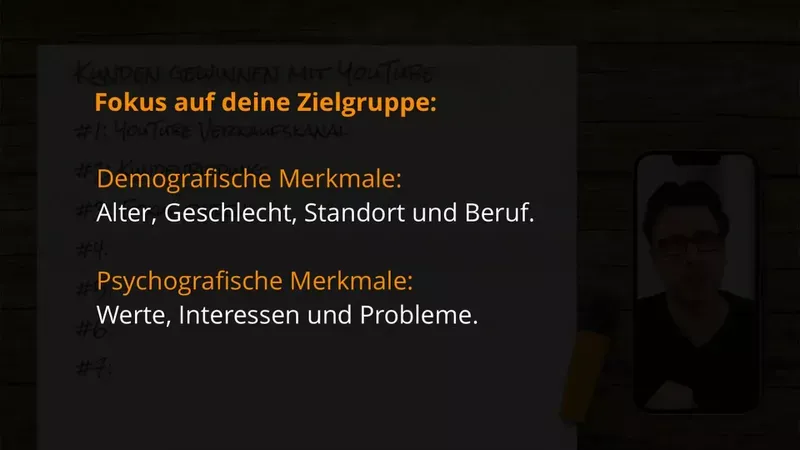 Um effektiv Inhalte zu erstellen, musst du wissen, wer deine Zielgruppe ist. Die Definition deines idealen Kunden hilft dir, die richtigen Themen auszuwählen und deine Videos gezielt zu gestalten.