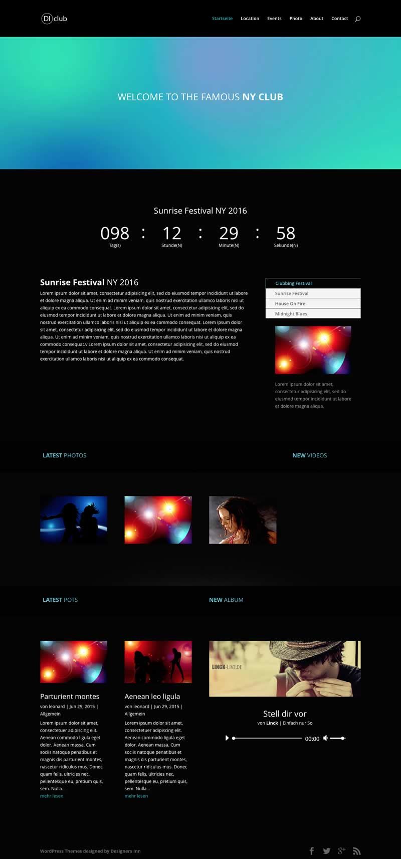 Ob Band, Club, Nightlife, DJs – mit dem WordPress Theme DI Club bekommt ihr ein modernes Theme, euch selbst, eure Location oder euer Portfolio zu präsentieren. Als Seitenhintergrund ist hier Video integriert. Selbstverständlich könnt ihr auch ein Bild oder eine neutrale Fläche als Hintergrund nutzen.