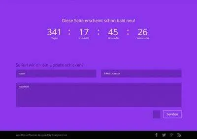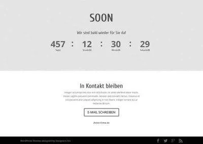 Jeder kennt die Situation: Die neue Website ist fast fertig … aber eben nur fast. Also vertröstet man die Besucher mit einem langweiligen Baustellenschild. Warum nicht lieber ein spannendes Übergangstheme nutzen. Das Theme ‚DI SOON.‘ zählt einen Countdown, bis ihr eure Website fertiggestellt habt. Das Theme lässt sich auch wunderbar als Landingpage für Aktionen nutzen. Noch XY viele Tage, bis ‚Black Friday‘ oder ‚Die Aktion läuft noch XY Tage‘.