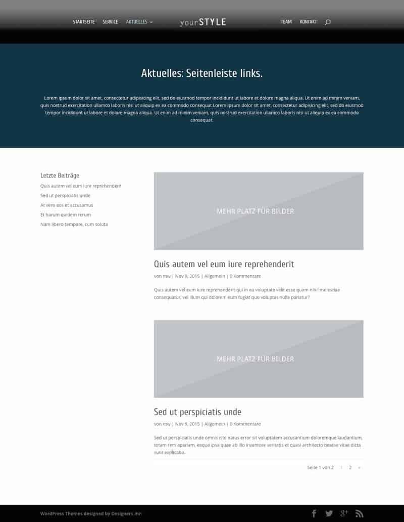 Auch an den Blog ist gedacht: Alles in einem schicken Design – von letzten Beiträgen bis "Über dich"-Widget.