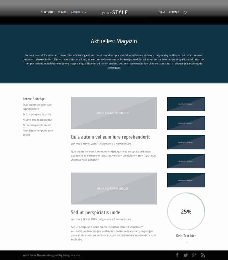 yourSTYLE ist ein Super-Dupa-Portfolio-Theme – und in der Tat eines der Top-Themes. Aber „schönes Design“ allein macht noch keine gute Website. Um euch das „Arbeiten“ mit den Themes zu erleichtern, wird dieses Theme mit einem großen Fundus an Tools ausgestattet, welches euch den täglichen Umgang mit eurer Website erleichern sollen. Ich freu mich auf euer Feedback.