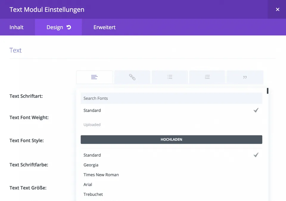 Tipp: Wenn du keine Google Fonts verwenden möchtest, aber dennoch benutzerdefinierte Fonts auf der Website verwenden möchten, kannst du Sie benutzerdefinierte Schriftarten im Visual Builder hochladen. Du kannst also deine Lieblingsschriftarten von Google Fonts herunterladen und diese dann auf deiner eigenen Website hochladen und hosten.