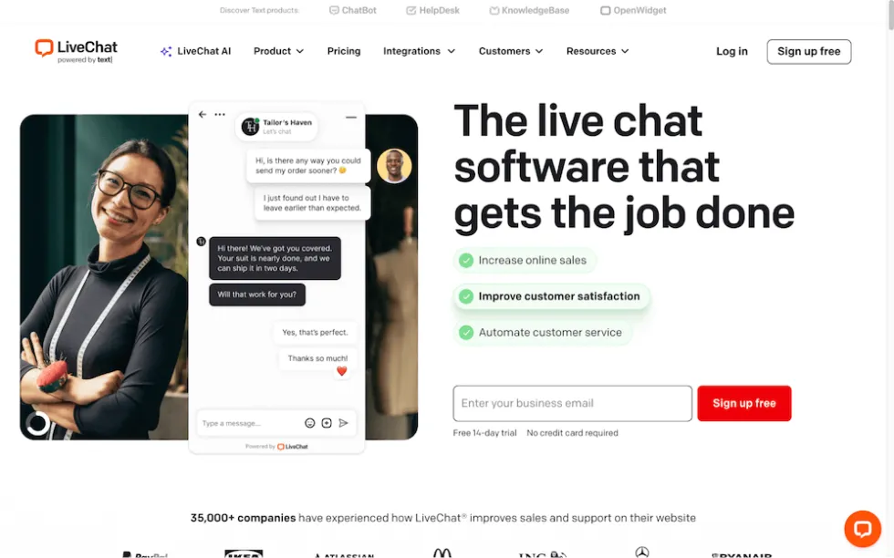 Welche Unternehmen nutzen LiveChat? Ikea, McDonald’s und Kia, um nur einige zu nennen. Doch die beeindruckende Kundenliste ist nicht der einzige Grund, warum sich ein Blick lohnt. Nehmen wir zum Beispiel die Integrationen: Neben WordPress funktioniert LiveChat mit über 200 Tools – von CRM-Systemen und E-Mail-Marketing-Plattformen bis hin zu Kommunikations-Tools wie Slack.
