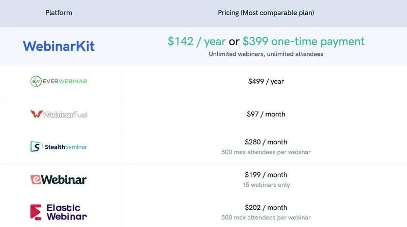 Ein weiterer Vorteil von WebinarKit ist, dass es erschwinglich ist. Im Gegensatz zu anderen Webinar-Lösungen auf dem Markt, die für kleine Unternehmen und Start-ups unerschwinglich sein können, bietet WebinarKit ein Lifetime-Angebot, das es für jeden zugänglich macht.