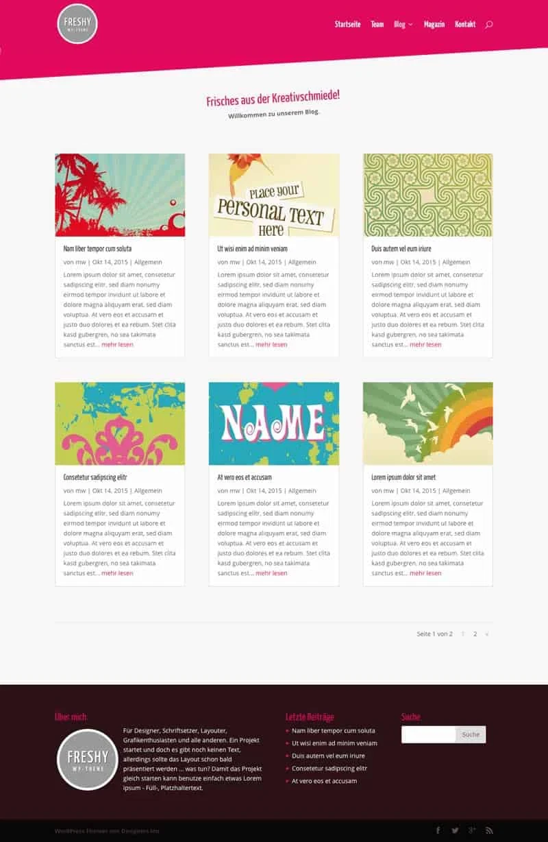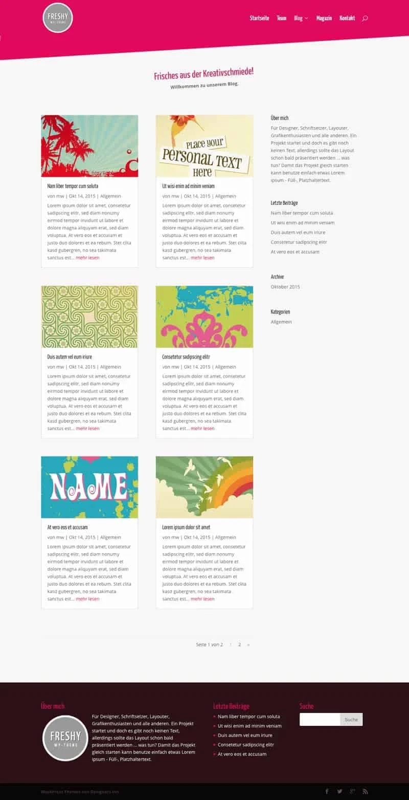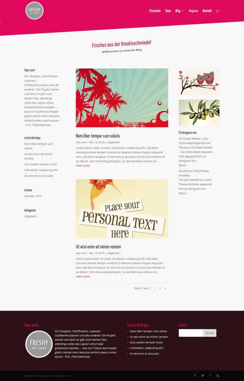 Auch an den Blog ist gedacht: Alles in einem schicken Design – von letzten Beiträgen bis "Über dich"-Widget.