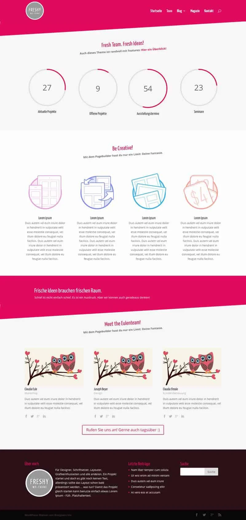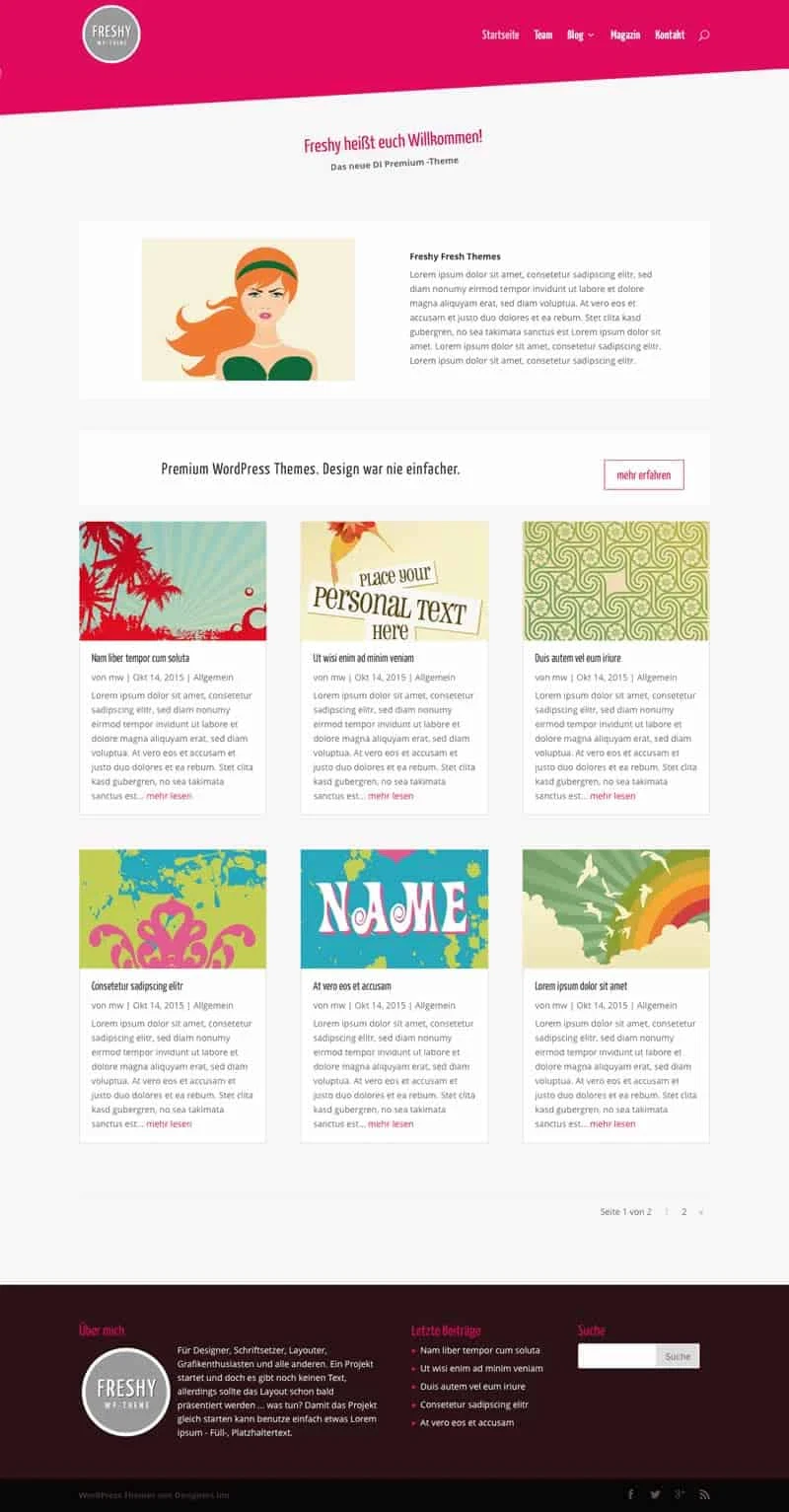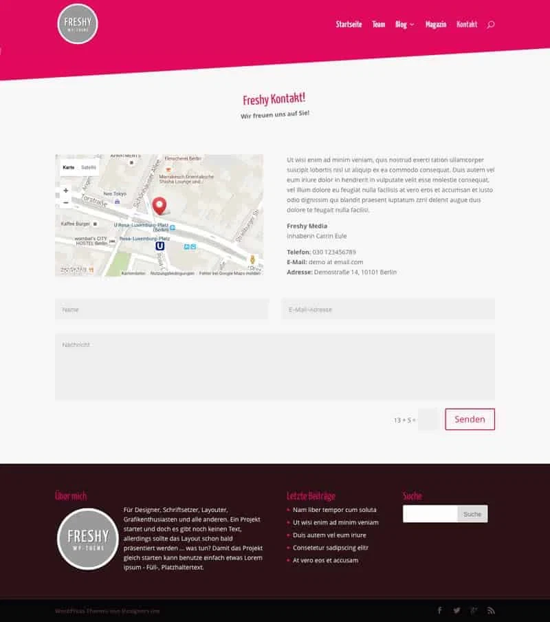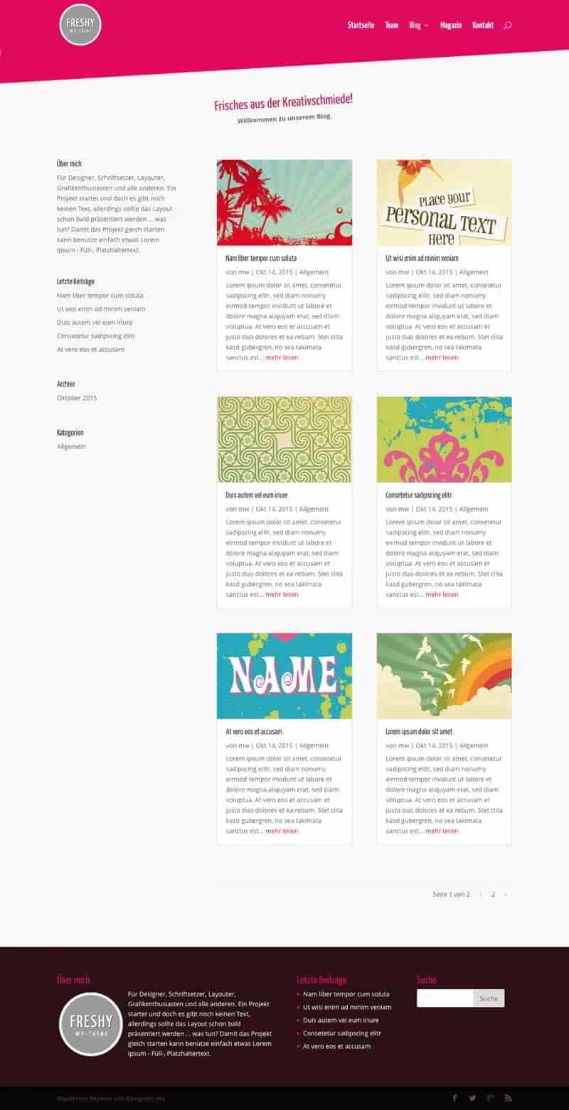 Auch an den Blog ist gedacht: Alles in einem schicken Design – von letzten Beiträgen bis "Über dich"-Widget.